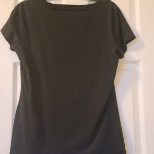 Stylish black tee with pink graphic design. Features 'True Religion 2002' text.