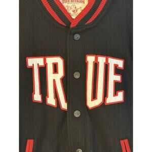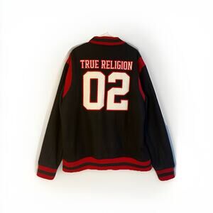 True Religion Varsity Jacket Black Red Wool Blend 3XL Men’s Y2K Streetwear Rare