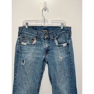 True Religion Vintage BOBBY Blue Denim Distressed Straight Leg Jeans Men Size 32