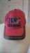 True Religion Vintage Y2K Adjustable Strapback Cap. Distressed Embroidered. Light red with brown faux leather trim.