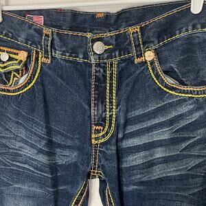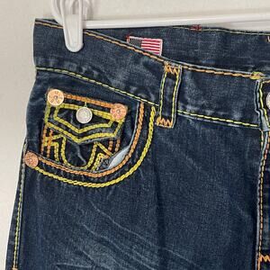 True Religion Vintage Y2K Mens Jeans 34x34 Yellow/Orange Stitching Flap Pocket