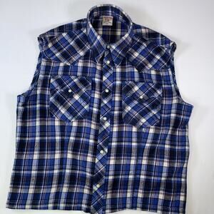 True Religion Western Plaid Cut Off Sleeve Vest Mens Size XXXL