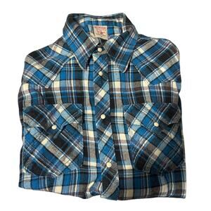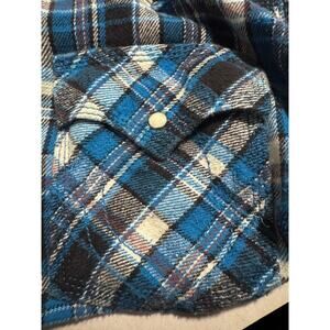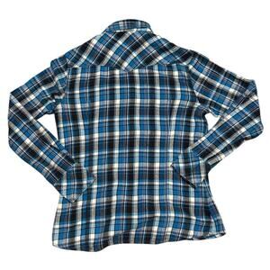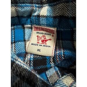 True Religion Western Plaid Flannel Shirt Blue Black White Pearl Snap XL