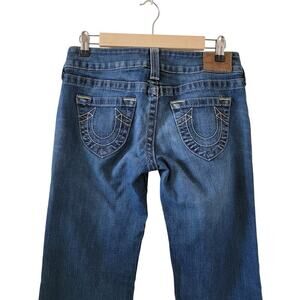 True Religion Wide Leg Candice Y2K Style 1970's Style Mid Rise Medium Wash Jeans