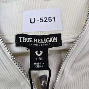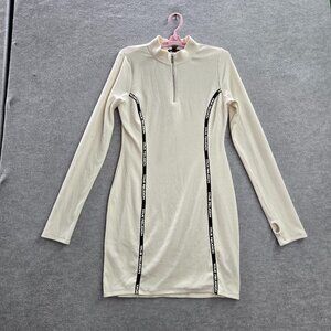 True Religion Women Dress Large Ivory Long Sleeve Zip Up Mini Mock Neck NWT