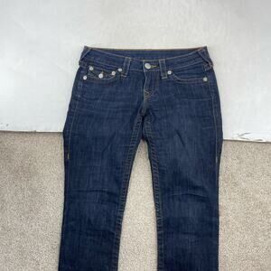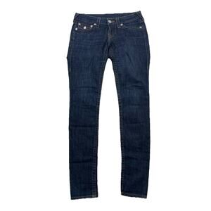 True Religion Women Size 27 Skinny Jeans Blue Flat Pockets Dark Wash 32" 55-9