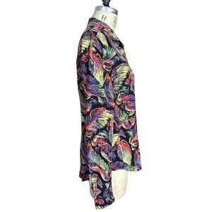 True Religion Womens Angel Wings Printed Silk Shirt Button Up Size Medium