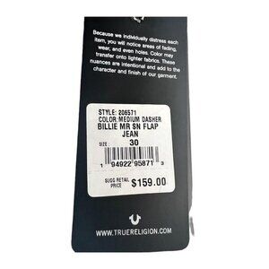 TRUE RELIGION Womens Billie Mid Rise Straight Leg Fit Whiskered Jeans Sz 30 NWT