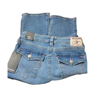 True Religion Womens Billie Mid Rise Whiskered Straight Leg Jeans Sz 30 New