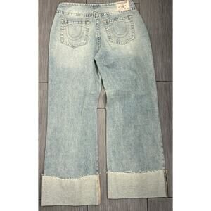 True Religion Women's Blue Leila Cuffed Slung Baggy Jean Size 31 Distressed