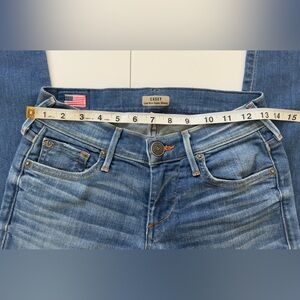 Chic blue skinny jeans. Iconic back pocket design. Perfect for everyday wear.