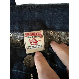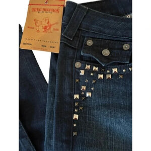 True Religion Women's Blue Studs Rhinestone Becky Flap Pocket Denim Jean Size 31