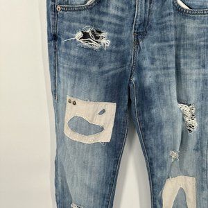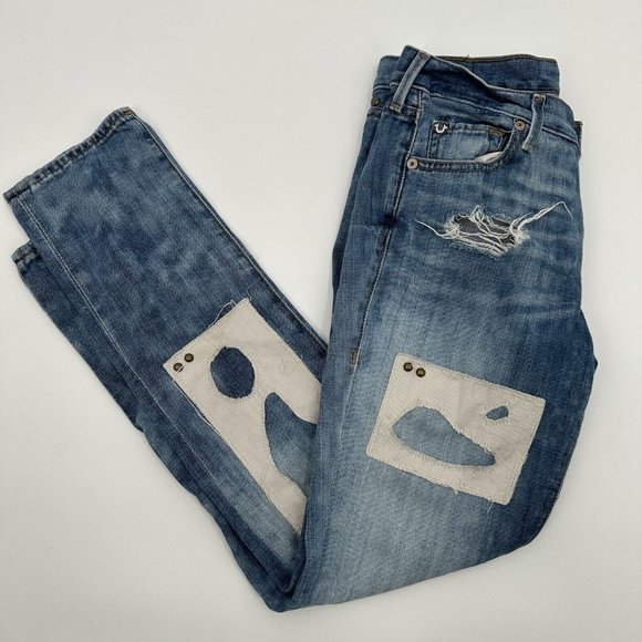 True Religion Women's Cameron Slim Boyfriend Patchwork Jeans Size 24