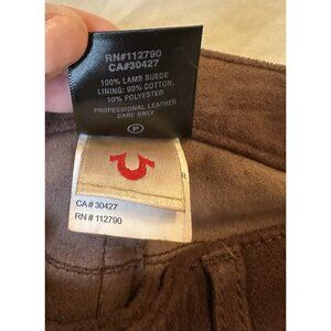 True Religion Women's Casey Lamb Leather Suede Skinny Pants Brown 28 M