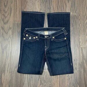 Perfect Condition Used One Time Elevate your style with these True Religion women's dark blue jeans. Perfect for any occasion, these jeans offer a classic fit and premium comfort.Inseam 33” waist 16”