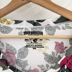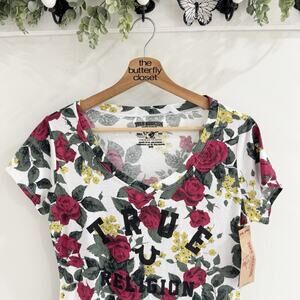 True Religion Women’s Floral League Round V Neck Graphic Floral T Shirt New M 19