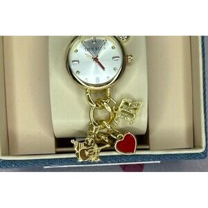Gold with 6 charms-handbag, red horseshoe stud, rhinestone horseshoe, rhinestone TR, red heart and gold guitar