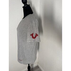 True Religion Womens Gray T-Shirt With Red Logo Graphic