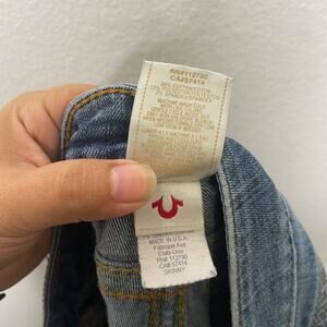 True Religion Womens Pants Size 26 Denim Blue Medium Wash Skinny Leg Jeans .In pre owned condition, normal signs of wear. Zipper closure. Embroidered detail throughout. Low rise. Cotton blend.