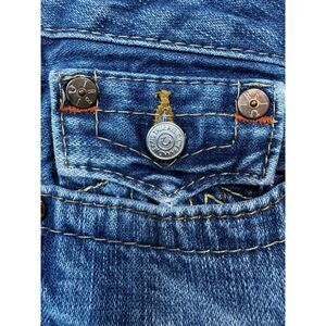 This is your new favorite pair of True Religion jeans. They are the perfect low-rise fit, giving a flattering line through the hip and a slight flare for that on-trend silhouette. The Ocean Blue wash is versatile and goes perfectly with a heel or a sneaker—a true Daily Uniform essential. Made from a comfortable Cotton/Spandex Blend, they move with you, whether you’re running errands or enjoying a night out. This is a great piece for building trust in your wardrobe. Size 28 confirmed.