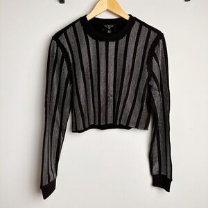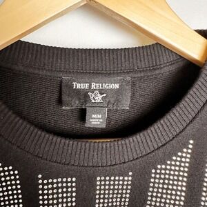 True Religion Women's Long Sleeve Crystal Crop Pullover Top Medium