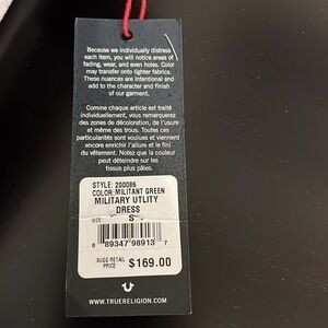 True Religion Women's Military Utility Dress in Militant Green, sleeveless, NWT