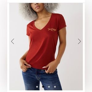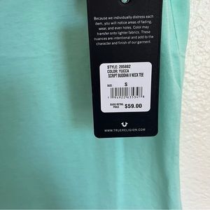 True Religion Women’s Mint Yucca V Neck Buddha Script T-Shirt NWT Small
