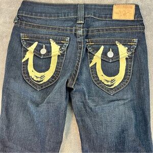 True Religion Women’s Painted Flap Pocket Western Low Rise Boot Cut Jeans 29