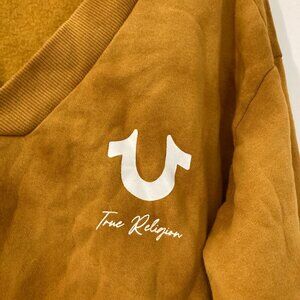 True Religion Womens Size M Cropped Sweatshirt Yellow Brown Collegiate Yoga