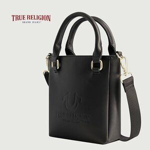 Introducing our adorable and stylish Mini Love Tote Handbag, where fashion meets functionality. Featuring the iconic True Religion horseshoe logo prominently displayed, it adds a touch of charm to any outfit. Enhanced with striking gold hardware, its elegance shines through.