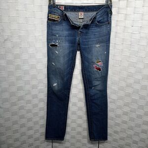 True Religion Womens Y2k Vintage Brianna Patchwork Aztec Button Fly Jean Size 26