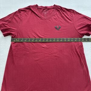 Item: True Religion World Tour Men XL T-Shirt Red V-Neck Horseshoe Logo 100% Cotton