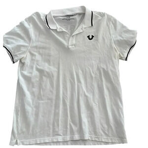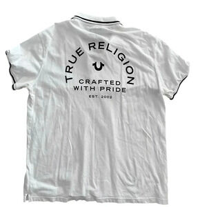 True Religion World Tour White Short Sleeve Polo Shirt Size 2XL