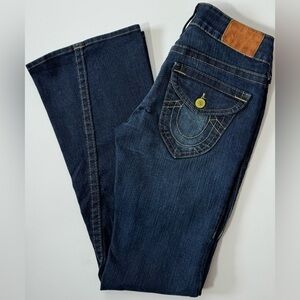 True Religion Y2K Joey Twist Seam Yellow Button Low Rise Dark Wash Jeans Size 27/4