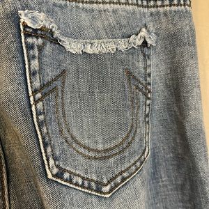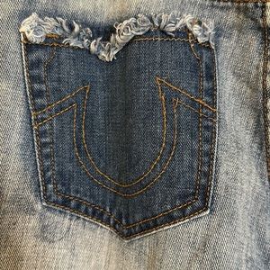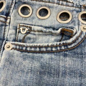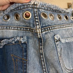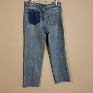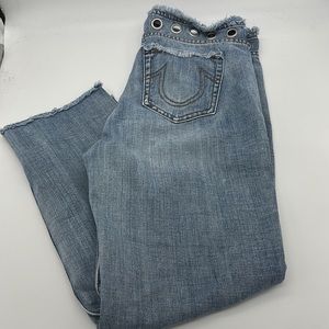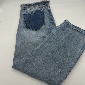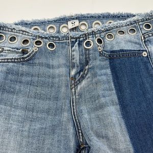 True Religion Y2K Super Low Rise Stovepipe Deconstructed Crop Jeans Size 27