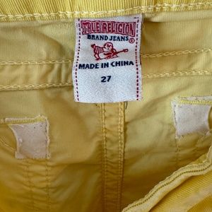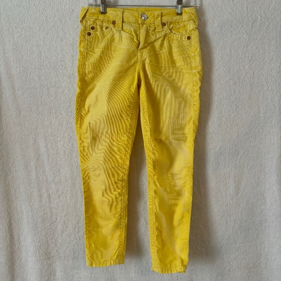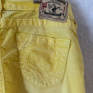 True Religion Yellow Brooklyn Corduroys Size 27, rise: 8.5", length: 34". Stretchy and super comfortable. Worn 1-2 times MAX. Practically new, smoke-free home.