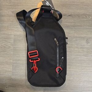 Stylish and versatile, the True Religion black crossbody bag is perfect for everyday use. Featuring a sleek design with a touch of red, it combines fashion with functionality.