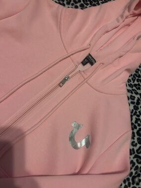 True Religion light Pink Rhinestone Script zip up