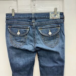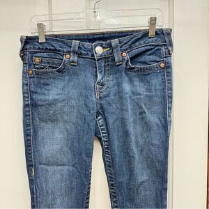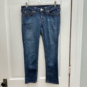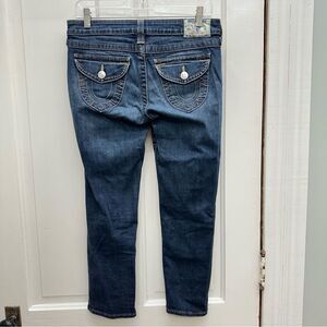 True Religion thick stitch denim jean capri capris women's 27 inseam is 24.5 can be rolled up or left down depending on length desired