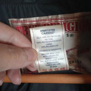 True Religion black full zip Striped sleeve jacket. Has two side pockets The Nylon part needs sweater shaving it's pilling. nothing bad. other than that it's in very good condition..no stains or holes. approx measurements pit to pit 23" length 27" taken flat lay. .........2216
