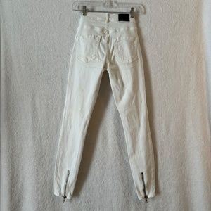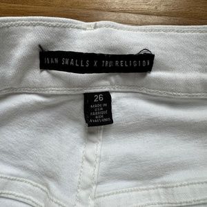 True Religion x Joan Smalls Mid-Rise Halle Jean in White Size 26, rise: 8.5", length: 36". Stretchy jeans with white ankle zipper closure. Worn 1-2 times MAX. Excellent condition, smoke-free home.