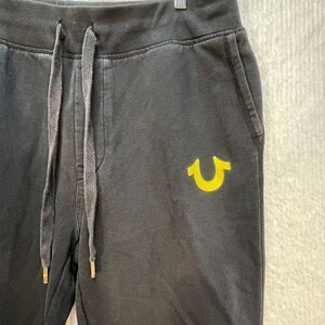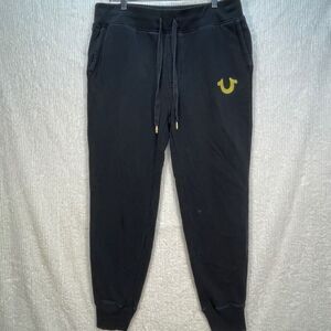 True Religion Black Gold Logo Drawstring Cotton Tapered Cuff Sweatpants Large
