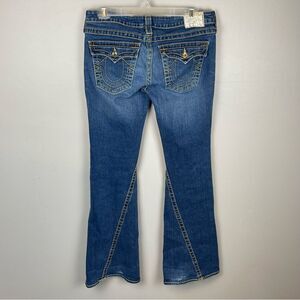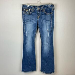 True Religion DISCO Joey Big T 30 Gold Stitching Crystal Button Flare Leg Jeans