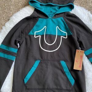 True Religion Hoodie Sweatshirt New Black Teal Womens Size Small