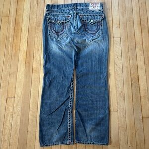 True ReligionJeans Straight Natural Red Stitch Super T Mens 38x33 Y2K Hip Hop
