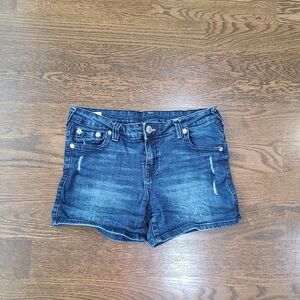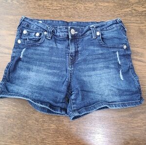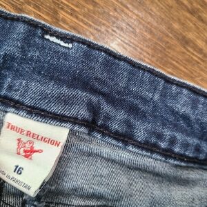 True Relihion Halle Mid Rise Super Skinny Denim Blue Girl 's Shorts Sz.16