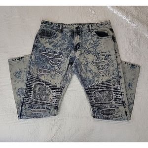 True Rock Jeans Mens 36 Blue Stonewashed Distressed Grunge Measures 38x32 Moto
