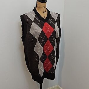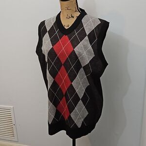 True Rock Men's Black, gray & red argyle sleeveless V neck vest, cotton/polyester fabric blend, size Large. Excellent to new condition, measurements in pics, smoke free home, ships next day. Bundle and Save!