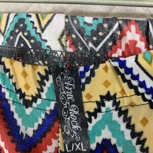 True Rock Womens L Leggings Colorful Geometric Cropped Mid Rise Eclectic Boho