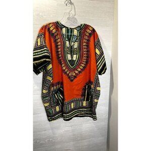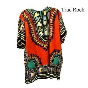 True Rock Women's Orange African Dashiki Dress Shirt/V neck Tunic Top